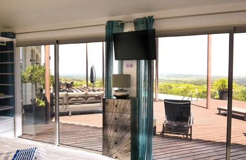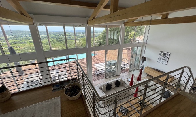 The Villa is composed of 2 wings where the bedrooms are located, on either side of the large living room. Direct access to the large panoramic terrace (180° view of the Alpilles, Mont Ventoux).