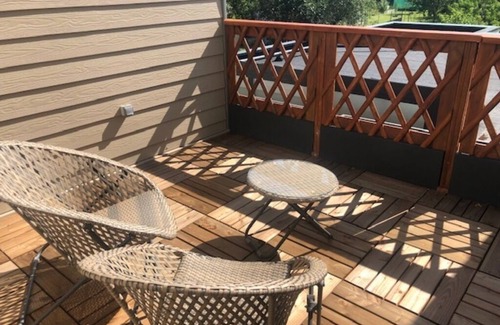The kitchen is equipped with an oven, a stovetop, and a dishwasher, as well as a coffee maker, an electric kettle, and a microwave. Bathroom amenities include a hair dryer, towels, and toilet paper. And you won't have to pack extra clothes, because you'll also have access to laundry facilities. Other amenities at this 1-bedroom, 1-bathroom rental include bed sheets, an ironing board, heating, and a dining table.