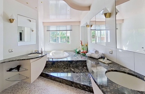 While you're here, you can enjoy all the comforts of home and more, including an outdoor hot tub and a private pool, as well as a flat-screen TV and climate-controlled heating. Other amenities include towels, multilingual staff, housekeeping, and soap.