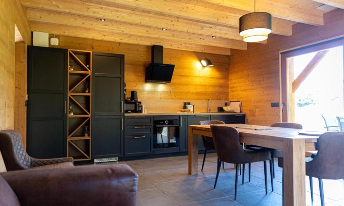 7 miles from Herisson Falls in Bonlieu, Les Jardins du Hérisson Chalet 2 offers accommodations with access to spa facilities and solarium. Free Wifi is offered throughout the property and private parking is available on site. Outdoor seating is also available at the chalet. Offering a terrace with mountain views, this chalet also features a satellite flat-screen TV, a well-equipped kitchen with a dishwasher, an oven, and a microwave, as well as 1 bathroom with a walk-in shower and a hair dryer. For added privacy, the accommodation has a private entrance and soundproofing. Guests can make the most of the warm weather with the property's barbecue facilities. Guests can also relax in the garden. Lac de Chalain is 9.4 miles from Les Jardins du Hérisson Chalet 2, while Rousses Lake is 22 miles from the property.