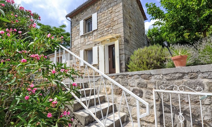 Beautiful house "Les Lauriers Roses". In the hamlet Montréal 3 km from the centre of Largentière, 15 km from the centre of Aubenas, 5 km from the centre of Rosières, 7 km from the river. Private: property 300 m2 with meadow. Stepped path (7 steps) to the house. Roofed, parking on the premises. Shop 3 km, supermarket 5 km, bus stop "Largentière Les Vergnades" 3 km, railway station "Montélimar" 45 km, indoor swimming pool 12 km.
