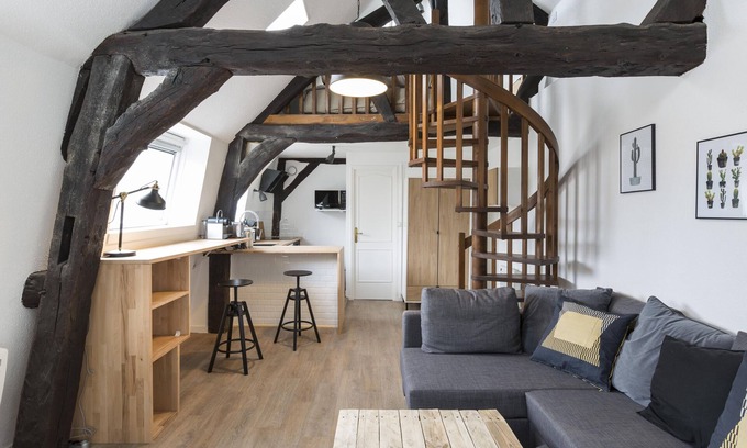 The Cocoonr Agency offers you, in the heart of the Hôtel du Molant, a magnificent 17th-century building listed as a Historic Monument. You will immediately be charmed by the location, character, and charm of the place. You are here on the Place des Lices, famous for its Saturday morning market. Comprising a living area and an alcove bedroom on two levels, this apartment is the ideal base for visiting the city. Its monumental and historic staircase takes you up to the third floor (no elevator) where this charming cocoon nestles under the eaves.