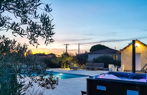"Les Lièvres" House: Air-conditioned Relaxation Oasis with Pool & Jacuzzi is located in Panazol. "Les Lièvres" House: Air-conditioned Relaxation Oasis with Pool & Jacuzzi provides accommodation, featuring Balcony/Terrace, Sports/Activities, Entertainment, among other amenities. This House features Balcony/Terrace, Sports/Activities, Entertainment, to make your stay a comfortable one.