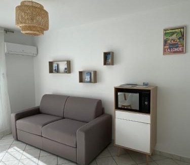 Providing a seasonal outdoor swimming pool, Les locations Cinaureva « Village de la mer » provides accommodations in La Londe-les-Maures. This property offers access to a terrace, free private parking, and free Wifi. Zénith Oméga Toulon is 18 miles from the apartment and Chateau de Grimaud is 23 miles away. The air-conditioned apartment consists of 1 bedroom, a living room, a fully equipped kitchen with a dishwasher and a coffee machine, and 1 bathroom with a walk-in shower and a hair dryer. This apartment also provides guests with a balcony that doubles up as an outdoor dining area. The accommodation is non-smoking. Plage de Tamaris is 1.1 miles from the apartment, while Toulon Train Station is 18 miles away. Toulon - Hyeres Airport is 6.8 miles from the property.