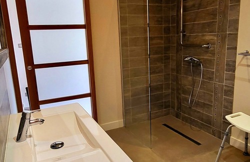 Go here for a cocoon luxuriously appointed on three levels. In a chic and cozy atmosphere, it's time to relax. The decor is simple and harmonious. Bright and clear, this lodge offers a framework for welfare. Tucked under the eaves, you discover with pleasure the master suite and luxury amenities. The hot tub facing the bay window through which you can admire, in private, the view over the roofs of the property, the surrounding countryside and the bay of Mont Saint Michel. Taste the pleasure of enjoying an exceptional view while soaking in the bath. The sleeping area features a large double bed. On the ground floor, the living room opens onto the private terrace. Again, the quiet of the natural environment and the view of the pond invite relaxation. The lodge can accommodate up to 4 people thanks to the sofa bed and second bathroom on the 1st level.