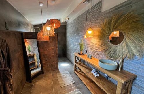 Les Lofts de Bouzigues - Jacuzzi privé - Plage 350m in Bouzigues provides adults-only accommodations with an infinity pool, an open-air bath, and a garden. This bed and breakfast provides free private parking, full-day security, and free Wifi. Guests can use the hot tub and spa facilities, or enjoy pool views. Featuring a terrace, the units offer air conditioning and have a flat-screen TV and a private bathroom with hot tub and bathrobes. A fridge and kitchenware are also featured, as well as a coffee machine and a kettle. At the bed and breakfast, all units have bed linen and towels. There is an on-site snack bar. Guests at the bed and breakfast will be able to enjoy activities in and around Bouzigues, like walking tours. GGL Stadium is 17 miles from Les Lofts de Bouzigues - Jacuzzi privé - Plage 350m, while Montpellier Town Hall is 18 miles away. Montpellier - Mediterranee Airport is 25 miles from the property.
