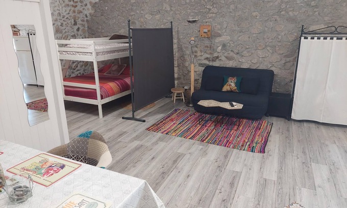 Les Maisons de Gaïa: Renovated barn is located in Tuchan. Les Maisons de Gaïa: Renovated barn provides accommodation, featuring Internet, Pet Friendly, TV, among other amenities. This Cottage features Internet, Pet Friendly, TV, to make your stay a comfortable one.