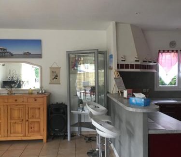 Les maisons de TIMI....maison Héron is located in Belin, just 25 miles from La Coccinelle and 25 miles from Kid Parc. This property offers access to a terrace and free private parking. The property offers barbecue facilities and outdoor furniture. With free Wifi, this 4-bedroom vacation home features a satellite TV, a washing machine, and a fully equipped kitchen with a dishwasher and oven. Towels and bed linen are available in the vacation home. There's also a seating area and a fireplace. The area is popular for fishing and hiking, and free use of bicycles is available at this 4-star vacation home. Guests can enjoy the outdoor swimming pool and garden at the vacation home. Bordeaux-Pessac Zoo is 27 miles from Les maisons de TIMI....maison Héron. Bordeaux–Mérignac Airport is 28 miles from the property.