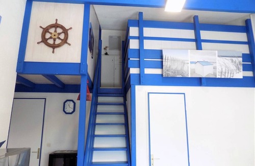 On the first floor, a mezzanine with two 80cm beds and an attic bedroom with a 90cm bed and storage.