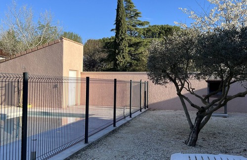 Independent new villa, 'Les Muscats', in the heart of southern Ardèche, comfortable, private pool above ground (6,40x3,90x1,32), secured ladder, air conditioning in each room, terrace, enjoying a closed ground of 1500m2, sported, garden.