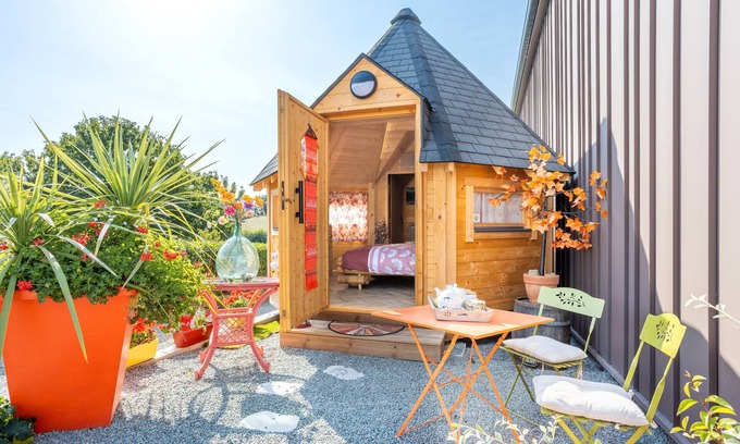 Les Philous Gourmands - Guest Room Chalet 'Chine' with Private Terrace has 1 Bedroom , 1 Bathroom, and max occupancy of 2 people. The minimum rental for this property is 1 nights, but this can change depending on the season you plan on staying. Previous guests have given good rated it, and VRBO labeled it a top-rated Bed & Breakfast because of the excellent services rendered by the owner or manager of this Bed & Breakfast, and has consistently provided great experiences for their guests. Most families or guests that use it recommend it to their friends and some of them are repeat guests. Bed & Breakfast has a friendly neighborhood, and the Saint-Michel-Mont-Mercure has interesting places to visit. If you want to learn more about the Bed & Breakfast in Saint-Michel-Mont-Mercure, such as places to visit and things to do nearby, you can check below to learn more.