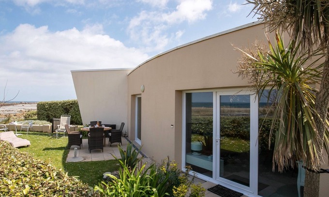 Kerfissien: Beautiful apartment block "Les Pieds dans l'eau". 4 km from the centre of Plouescat, 6 km from the centre of Cléder, 20 m from the sea, 20 m from the beach, direct access to the beach. Private: well-kept garden 80 m2 (fenced) with lawn and wildlife garden, parking at the house. Shop 4 km, grocery 4 km, supermarket 6 km, restaurant 4 km, bakery 4 km, café 70 m, bus stop 4 km, sandy beach "Plage Les Amiets" 700 m, thermal baths "Thalasso Roscoff" 20 km. Golf course (9 hole) 4 km, surf school 2 km, sailing school 3.3 km, walking paths from the house 10 m. Nearby attractions: Dunes de Keremma, réserve ornithologique 13 km, Roscoff, Jardin botanique, Île de Batz 20 km, Menehma, Kerlouan 23 km, Château de Kerjean, St.Vougay 16 km, Morlaix 35 km. Hiking paths: GR 34, chemin des douaniers 10 m, balades entre terre et mer.