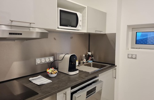 This 1-bedroom rental features a living room, a dining area, and a sofa bed. Connect to the free WiFi, or get cozy in front of the TV. Bathroom amenities include a hair dryer and towels. The kitchen is equipped with an oven, a stovetop, and a refrigerator, as well as a coffee maker, an electric kettle, and a microwave. And there's access to laundry facilities, so you can even pack a bit lighter. Other amenities include bed sheets, an ironing board, soundproofing, and heating.