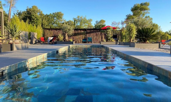 LES ROCHES DE BAUDISSET in Saint-Paul-en-Forêt provides adults-only accommodations with a seasonal outdoor swimming pool and a garden. There's a private entrance at the bed and breakfast for the convenience of those who stay. The bed and breakfast offers rooms with air conditioning, free private parking, and free Wifi. Each unit features a terrace, a fully equipped kitchen with a microwave, a dining area, and a flat-screen TV, while the private bathroom includes a walk-in shower and a hair dryer. A fridge and stovetop are also featured, as well as a coffee machine. At the bed and breakfast, each unit comes with bed linen and towels. À la carte and continental breakfast options with fresh pastries, fruit, and juice are available. Guests at the bed and breakfast will be able to enjoy activities in and around Saint-Paul-en-Forêt, like cycling and hiking. The bed and breakfast has a picnic area where you can spend the day outdoors. Saint-Raphaël Valescure Train Station is 18 miles from LES ROCHES DE BAUDISSET, while Parfumerie Fragonard – The History Factory Grasse is 19 miles from the property. Nice Côte d'Azur Airport is 39 miles away, and the property offers a paid airport shuttle service.
