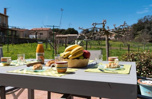 Villa "Les Rosiers", surrounded by meadows. In the hamlet Bala, on the outskirts, 3 km from the centre of Muratello, outside the resort, 7 km from the centre of Porto-Vecchio, in a quiet position, 5 km from the sea, 6 km from the beach, in a cul-de-sac. Private: property 1'000 m2 (fenced), large garden (fenced) with lawn. In the house: with TV. Parking on the premises. Shopping centre 6 km, restaurant 3 km, bakery 3 km, bus stop 6 km. Sports harbour 6 km. Nearby attractions: Centre ville Porto-Vecchio 6 km, Plage de Palombaggia 15 km, Plage de Santa Giulia 12 km, Bonifacio 30 km. Well-known lakes can easily be reached: lac de l'Ospedale 16 km. Hiking paths: Cascade Piscia di ghjaddu 28 km. Please note: car recommended.