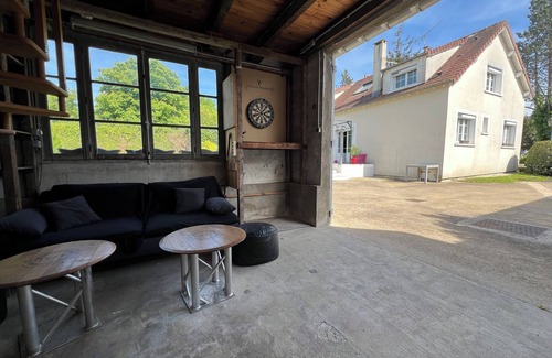 Ideal for having fun with family or friends, you'll find a 50 m2 outbuilding in the garden, equipped as a games room with table football, a dart board, a sofa and 2 coffee tables.
