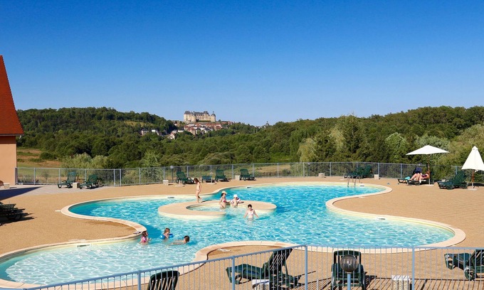 Les SOURCES "Pink Lady" VIP terrace, SPA, swimming pool, fishing pond, playground is located in Hautefort. Les SOURCES "Pink Lady" VIP terrace, SPA, swimming pool, fishing pond, playground provides accommodation, featuring Pet Friendly, Balcony/Terrace, Accessibility, among other amenities. This Cottage features Pet Friendly, Balcony/Terrace, Accessibility, to make your stay a comfortable one.