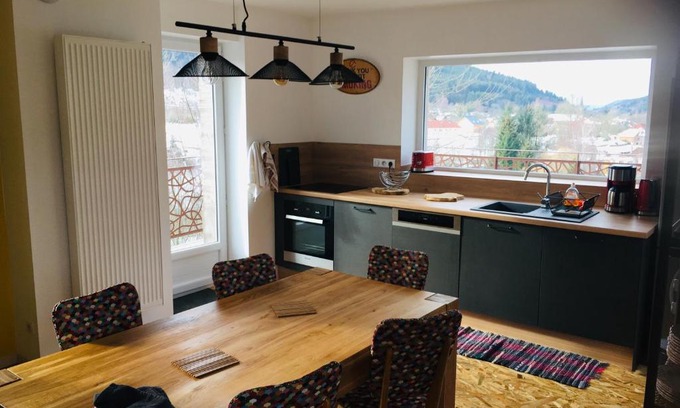 Featuring barbecue facilities, Les Terrasses du Donon features accommodations in Raon-lès-Leau. This property offers access to a balcony, free private parking, and free Wifi. The property provides a children's playground and outdoor furniture. Providing a terrace with mountain views, this vacation home also offers a flat-screen TV, a well-equipped kitchen with a dishwasher, an oven, and a microwave, as well as 3 bathrooms with a walk-in shower and a hair dryer. For added privacy, the accommodation has a private entrance and soundproofing. A mini-market is available at the vacation home. The area is popular for skiing and cycling, and free use of bicycles is available at the vacation home. The vacation home has a picnic area where you can spend the day outdoors. Strasbourg International Airport is 31 miles away.