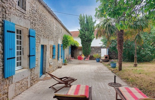 Sainte Gemme 24 km from Royan: Country house "Les Vidalières", from the 18th century, renovated. 3 km from the centre of Sainte Gemme, 25 km from the centre of Royan, 25 km from the centre of Saintes, in a quiet position, 25 km from the beach. Private: property 800 m2 (fenced), trees, roofed, parking (for 2 cars) at the house on the premises. Grocery 3 km, restaurant 3 km, bus stop "Mirambeau" 10 km, railway station "Saujon" 17 km, sandy beach "Royan" 25 km, park "Luna Park (Juillet-Août)" 33 km, outdoor swimming pool 14 km, indoor swimming pool 14 km, thermal baths "Etablissement thermal de Saujon" 13 km. Golf course (18 hole) 26 km, tennis 3 km, riding stable 26 km. Nearby attractions: La Ferme de Magné 8 km, Palais des Congrès - Royan 25 km, Embarcadère Royan - Le Verdon 25 km, Golf de Royan 30 km, Zoo de La Palmyre 33 km, Hippodrome - La Palmyre 34 km. Please note: car recommended. The house is in the middle of the countryside near a small farm.