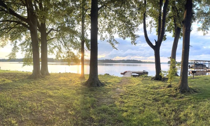 Sunrise and sunset picture perfection! Private dock! Large Western facing windows for beautiful sunset views. Family friendly with everything from pack-n-play and highchair to games for kids and adults (Settlers of Catan, Chess, Poker, Connect 4, Battleship, Monopoly, Lego and so much more). Oversized porch swing and outdoor loveseat. Wood burning fireplace in the livingroom. And a fully stocked kitchen (plenty of pots and pans, blender, crockpot, toaster, dishware, flatware). Pets are welcome and there is a one-time $50 pet fee.