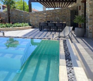 Offering pool views, Lethe Villas with Private Pool Kato Gatzea Greece in Kato Gatzea features accommodations and a garden. With sea views, this accommodation provides a patio. The villa offers mountain views, a year-round outdoor pool, and free Wifi is available throughout the property. The villa complex will provide guests with air-conditioned units offering a desk, a coffee machine, an oven, a microwave, a safety deposit box, a flat-screen TV, a terrace, and a private bathroom with a walk-in shower. There's also a dining area and a fully equipped kitchen with a toaster, a fridge, and a stovetop. At the villa complex, the units are fitted with bed linen and towels. Sikia Beach is a 4-minute walk from the villa, while Panthessaliko Stadium is 13 miles away. Nea Anchialos National Airport is 41 miles from the property.