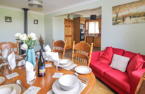 Amenities: Oil central heating. Electric double oven and hob, microwave, fridge, freezer, washing machine, tumble dryer, attachable children's dining chair, dishwasher, air fryer, kettle, and toaster. 2 x Smart TV, WiFi. Fuel and power inc. in rent. Bed linen and towels inc. in rent. Travel cot available on request. Stairgates either end of the staircase. Ample off-road parking. Enclosed gravelled patio with seating. Front garden with lawn. Sorry, no pets and smoking. Shop and beach 1.1 miles, pub 1.2 miles. Note: There's a step up to the entrance.