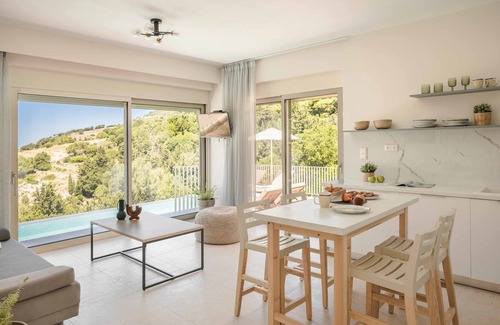 Outside, your owninfinity pool overlooks the land below so you can enjoy the panoramic views while cooling off from the hot midday sun. Comfortable sun loungers and an outdoor seating area under the shaded terrace mean you can relax in style. To make the most of your holiday in Kefalonia, fire up the barbeque grill and enjoy an alfresco meal.