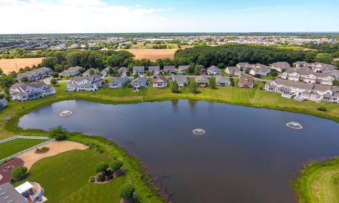 This two bedroom, two bath condo with single car garage is ideally located in the cozy and convenient neighborhood of Plantations East, Just 14 mins from downtown Lewes and Rehoboth Beach. Beautiful first floor condo on the water, with wrap around sun room for reading and relaxation. Each room of the condo has a view of the lake. This condo has a good size kitchen that is fully stocked with everything you need, its tastefully decorated, with fresh paint and new hardwood floors installed in 2023, it has one king bed in the primary, one twin, and one single bed in the secondary bedroom. All new mattresses in 2025, we also have a roll away single bed ideal for a small child in the hall closet. 2 tv's one in living room, and one in the primary bedroom, ideal for one small family, couple, or friends getaways, plenty of bike and walking paths to choose from in the area, fitness center, yoga and Pilates studio are within a 5 minute car ride, condo is just minutes away from grocery stores, movie theaters, outlet shopping, great restaurants and other amenities.