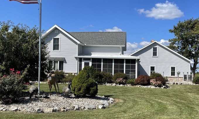 Country Setting with a relaxing enclosed front and back porch. Fire ring and hearing the sounds of the great outdoors. Great location to Lake Erie for sight seeing, hunters, fishermen and bird watching. Plenty of room to park your boat and vehicles. We have a lane to walk to the creek and even fish and relax. Our 5 bedroom, 2 bathroom country home can accommodate up to 10 people comfortably. Location to lake is 1 mile, fishing ramp within 3-5 miles. We are located in the prime area for walleye and perch fishing. Lickert Harder Lodge makes you feel right at home and relaxed while being close enough to many activities on Lake Erie. We are located by the largest bird week at the Ottawa Wildlife Refuge. If you like to fish or hunt or just love the lake your coming to the right location. We offer a supply of firewood for your stay