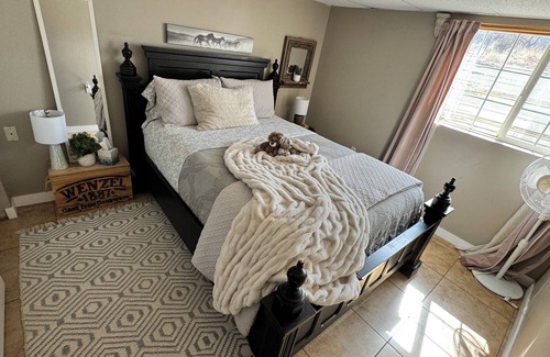 This is more than a place to stay. It is an experience. We have horses, goats, chickens, and often other animals. In the spring, we usually have babies to play with (Baby goats and baby chickens) If you’re into riding horses, send me an inquiry and I will give you the deets. There’s a fire pit so you can melt into the night and roast marshmallows while watching the stars of the Milky Way. Close to State and national parks this rental is well placed. Big and roomy there are three bedrooms with queen beds.there are two twin, roll-out mattresses and an ottoman that pulls out into a twin bed. The kitchen has a stove top, air-fryer toaster oven, plug in griddle, rice cooker and a crockpot, plus all dishes, pots, pans and utensils you could need. Also a Keurig coffee machine. I supply fresh eggs when I have them.if you want them.
