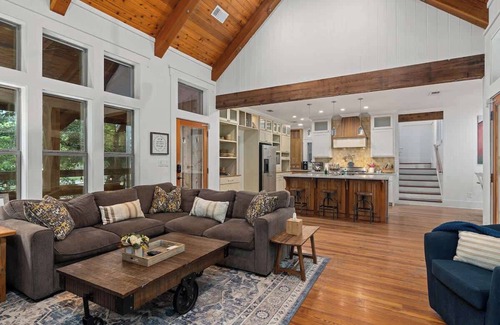 This stunning house boasts seven beautifully appointed bedrooms, featuring plush bedding and spa-like bathrooms designed for ultimate relaxation. The open-concept kitchen is equipped with stainless steel appliances and a charming farmhouse sink, perfect for preparing meals for your loved ones. Gather your guests in the expansive living area, which includes eight flat-screen TVs for entertainment, or take advantage of the outdoor amenities, such as a fire pit, gas grill, and covered patio - ideal for hosting receptions or post-wedding gatherings under the stars.