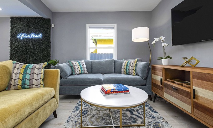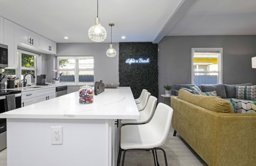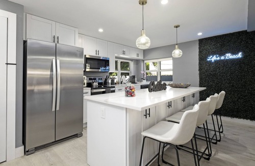 Enjoy a stylish get-a-way at our Life's a Beach home! We are centrally located in east Fort Lauderdale, minutes from Las Olas, Downtown and Beaches. Home features include a HUGE 7person jacuzzi with wifi and LED lights, TVs in every room, and a bbq for cookouts! We can't wait to welcome you to your home away from home!