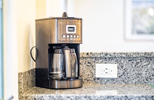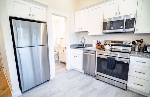 • Fully stocked kitchen: Cuisinart coffee maker, toaster, blender, knife set, pots, pans, utensils, Pur water filter, and kid-friendly dishes