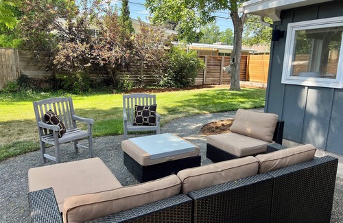 Charming stylish space with wide open, free flowing layout. Well appointed kitchen + breakfast bar open to bright sunroom that leads to covered terrace, large fenced yard with shade trees and greenery. Open dining / family room complete with TV, and full high speed internet access throughout the house. The home features clean white walls, hardwood floors and a stunning red brick fireplace and abundant natural light. Located in a very desirable neighborhood that is close to everything Boulder has to offer!