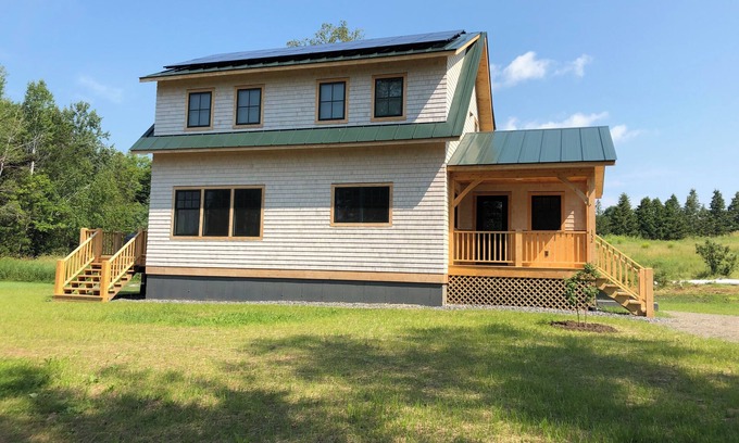 Gorgeous lake views in new solar-powered, all-electric house with 3 bedrooms and 2 baths in quiet West Glover, VT. Spacious kitchen/living dining area on main floor with plenty of space for your little ones to move around. Two sinks and a tub/shower upstairs with add'l shower in the downstairs bathroom. Two bedrooms with queen beds. Bunk room includes 1 twin bunkbed and 1 twin/full bunkbed. Large entry mudroom keeps the snow, mud, and sand out of the main living areas. Heating/cooling provided by heat pump. Wireless internet. Fully equipped kitchen with coffee makers (2), teapot, electric teakettle, dishwasher, & microwave. Full-size washer & dryer, Pack 'n Play, booster seats & high chair. Iron & ironing board upon request. Walking distance to Parker Pie featuring local craft beer. You'll be in an outdoor paradise--hiking, biking, fishing, swimming, boating, & Nordic skiing right out the door. Downhill skiing not far-- 35 min. drive to Burke Mtn, 45 min. drive to Jay Peak. 25 min. drive to the Craftsbury Outdoor Center.