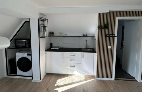 Enjoy your stay in this bright and newly furnished top-floor studio, ideal for one guest. Located on the second floor of a charming two-story house in Karlsruhe-Mühlburg, this modern space offers comfort, functionality, and a cozy atmosphere. Please note that there is no lift in the building, so stairs are required to reach the apartment.