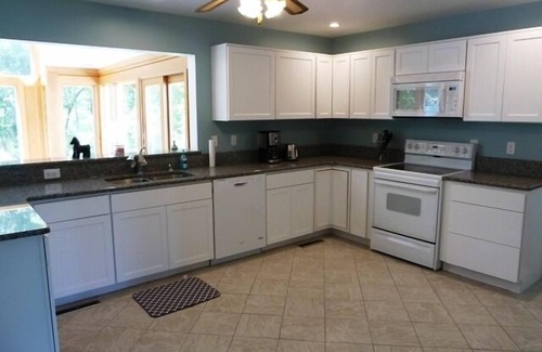 This gorgeous home is located directly on the river and has beautiful mountain and river views with a private concrete river access ramp and large open lot for plenty of outdoor games. River use and access ~ We offer free use of two Old Town Discovery canoes with paddles and vests. Bring your fishing poles and enjoy excellent small mouth bass fishing or just enjoy the river with our park like setting and concrete river ramp for easy access. The river is excellent for fishing, kayaking, tubing, or canoeing with pick up points conveniently located at the property.