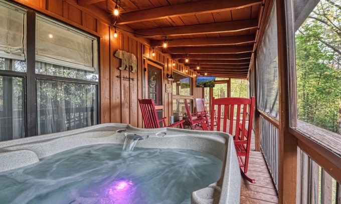 Escape the hustle and bustle of reality with a stay at Lightning Bug Lodge. While enjoying the firepit one evening our oldest son exclaimed "There are so many lightning bugs, I can catch them with my eyes closed". Hence the name Lightning Bug Lodge. Unlike many other mountain homes, it is easily accessible for all vehicles. When you arrive, the inviting atmosphere makes this cabin the perfect place to rest and unwind. The cabin features a California king bed in one bedroom, a traditional king in the second bedroom, and a full sleeper sofa in the living room with a surprisingly comfortable memory foam mattress. The cabin offers wireless internet and 4 different smart tv's, including one on the screened porch. Take in the view from the porch as you relax in the 4 person hot tub! Another great feature of the cabin is the large outdoor firepit area where you can enjoy an evening of roasting marshmallows. The cabin also offers a conveniently located park style grill. Another unique feature is a large/level parking area with space for multiple vehicles. A wood burning fireplace for those cold winter nights contributes to the cozy charm of the cabin. To top it off, the cabin offers a fully stocked kitchen and a custom made coffee bar for your convenience. Lightning Bug Lodge is the perfect cabin for your next escape from reality!