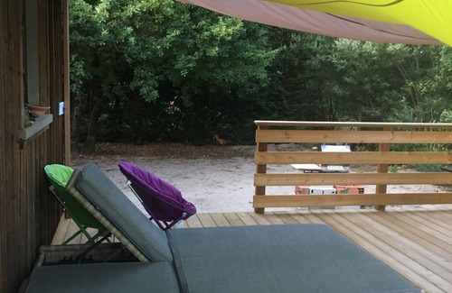 In a housing estate very green, practically no traffic, wooden house of particular, without opposite with garden, terrace and swimming pool. the proximity of the basin is 800 meters or 12 minutes walk and andernos the (city) 15 minutes by bike, will certainly spend a good holiday on the basin. I provide bicycles for adults if you wish.