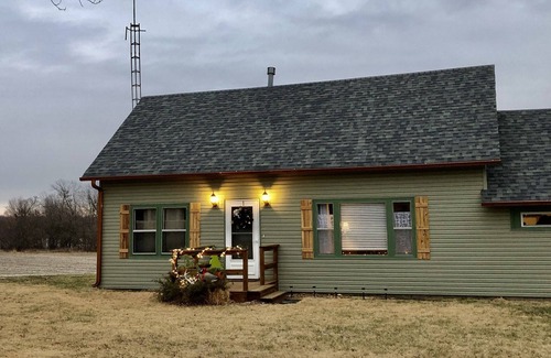 Lil' Bit Quaint Cottage started as a one-room schoolhouse and is over 100 years old! Sitting on 24 acres of farm ground located on Hwy 24 East in Carroll County, MO; A cozy cottage available for short-term rentals with two bedrooms, full bath, a tiny but full kitchen/dining area and a living room with satellite internet and streaming TV services.