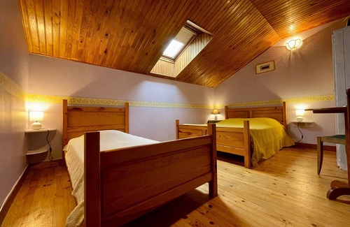 In this guesthouse, you will also find a second room, the "Salmon Room," which accommodates 4 people. It has a double bed (140x190cm), two single beds (90x190cm), and also a private bathroom and toilet.