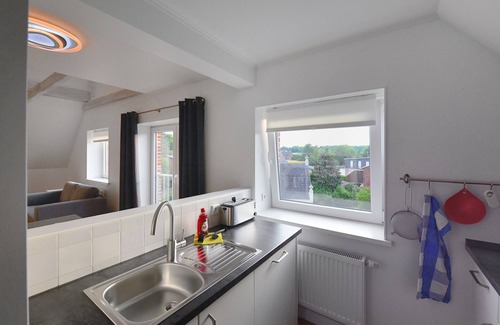 Close to the riverside, this family-friendly apartment brings it all within reach. There's convenient onsite parking, so you can leave your vehicle behind and let your feet make short work of the 8-minute walk to Harbor Toenning or the 12-minute walk to Multimar Aquarium. If you're looking to expand your horizons and see other nearby locales, you can catch a train at Tönning Station, a short 10-minute walk away.
