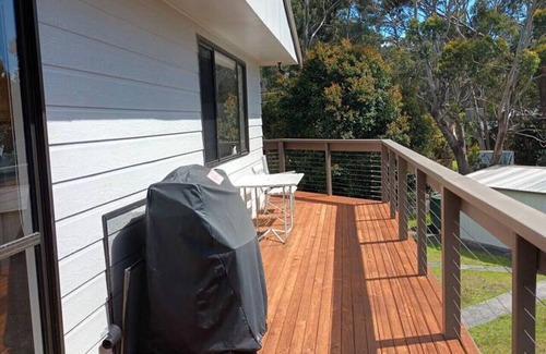 Located in a tranquil environment at the secluded northern end of Binalong Bay, this house is ideal for a family holiday: a stunningly beautiful, pristine beach is just a two minute walk. Swim, snorkel, relax or explore the brilliantly coloured rocks, the rock pools or the seaside walks - all can be accessed from the beach. Or tryout out the nearby mountain bike trails, go kayaking on the lagoons or set out on a range of walks, moderate to challenging, along the scenic coastline.