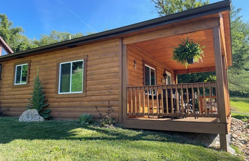 Cozy cabin with open floor plan overlooking a small pond on our property. Covered porch & fire pit. Views of woods & farm fields. Close to several restaurants, parks, walking trails & Trax Farms.