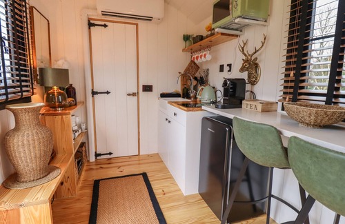 Southdown has a studio-style living space with a double bed, a kitchenette with; 2 ring induction hob, microwave, fridge with freezer compartment and a dining area. There’s a shower room with walk-in shower, basin, and WC. Gas water heating, air conditioning, fuel, power, starter pack for woodburning stove, bed linen, and towels are included. Off-road parking and wraparound garden with lawn, decking, BBQ area, log burner, furniture, and hot tub. Sorry, no smoking. Steps up to property. There is a £40 charge per pet. This is an adult only property. Please refrain from playing amplified music to respect other guests on-site. Note: Sorry, no stag/hen parties or similar. Note: When booking this property, guests will automatically become a free member of Wanderlust Camping Club. You will be added to their mailing list and will occasionally receive updates. Marketing subscriptions can be managed directly with Wanderlust. Note: This property has a minimum 3 night restriction. Note: Check in is from 4pm. The latest check in time is 10pm due to location.