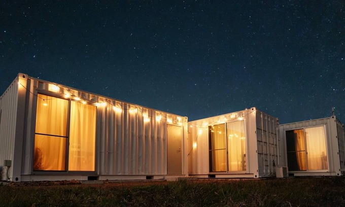 The container house consists of 3 buildings 2 bedrooms and 1 dining room Each bedroom has a semidouble bed shower and toilet