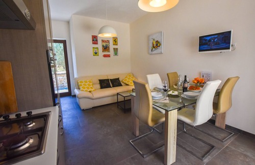 We have five self-contained apartments (1 one bedroom and 4 two bedrooms) which have their own well equipped kitchen, inside dining and living areas and outside patio areas. The apartments have been designed to provide stylish, high quality accommodation with designer furnishings to allow you to relax, unwind and enjoy this fabulous corner of Italy. Links to each of the individual apartments are provided from this page.