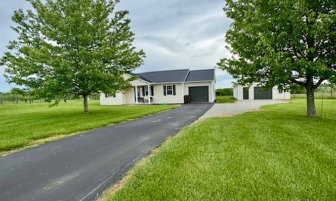 Tranquility awaits at this newly remodeled farmhouse, offering stunning views of the peaceful countryside. Located just minutes from town, Lincoln Homestead State Park, and Cornerstone Acres, you'll find yourself at the heart of Bourbon Country, with easy access to all your needs and desires.