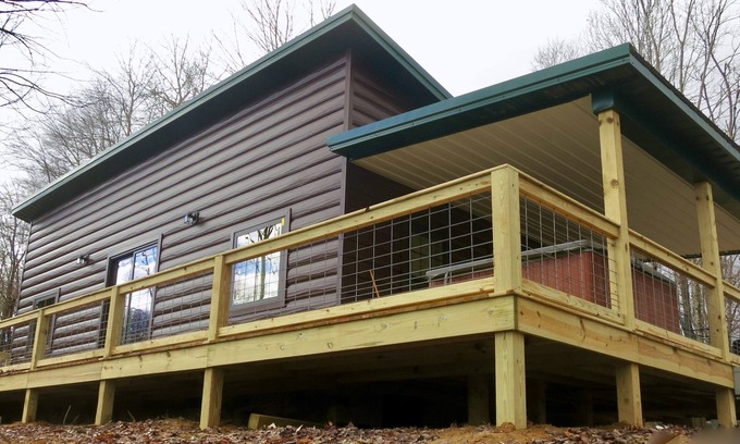 Perched on a wooded ridge top, this spacious, Amish built cabin is the ideal place to sit back and relax. Named for it's dark log-like exterior and green roof, Lincolnwood Cabin has shared hiking trails on the property that circle around to the hilltop, and wind down to a small creek, the scenery is sure to inspire.