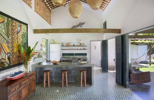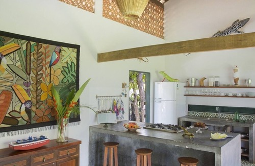 With rustic-contemporary décor and extensive veranda facing the sea, Casa Patacho has already been featured in several national and international reports, as well as being included in the book "Casas de Sonho" by Editora Abril. The three bedrooms are air conditioned and have individual balconies with hammocks and sea views. In the master suite there is queen size bed and in the other two bedrooms king size beds which can be separated into 2 single beds. Wi-Fi internet